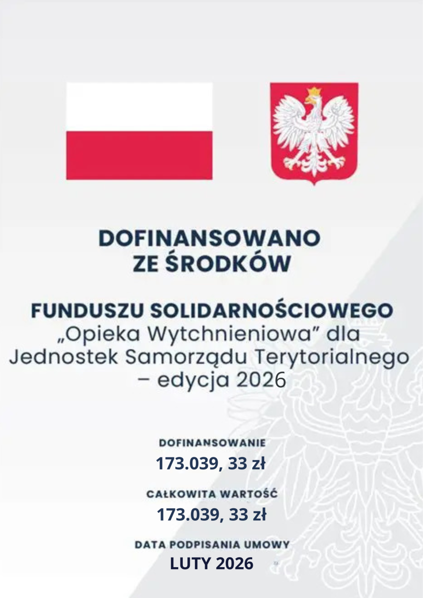 W dniu 24.02.2026r. Wójt Gminy Zarzecze - Pan Tomasz Bury przy kontrasygnacie Skarbnika gminy Zarzecze - Pani Małgorzaty Gil podpisał umowę z Wojewodą Podkarpackim na dofinansowanie zadania ze środków z Funduszu Solidarnościowego w ramach resortowego Programu Ministra Rodziny, Pracy i Polityki Społecznej „Opieka wytchnieniowa” dla Jednostek Samorządu Terytorialnego – edycja 2026.
